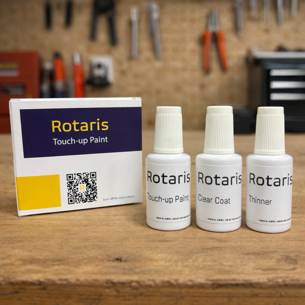 The paint kit consists of a coloured basecoat and clear coat topcoat. The paints are made from waterborne automotive paints, which are packed in brush cap bottles - ideal for touch-up repairs.