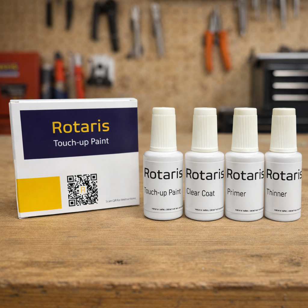 The paint kit consists of a coloured basecoat and clear coat topcoat. The paints are made from waterborne automotive paints, which are packed in brush cap bottles - ideal for touch-up repairs.